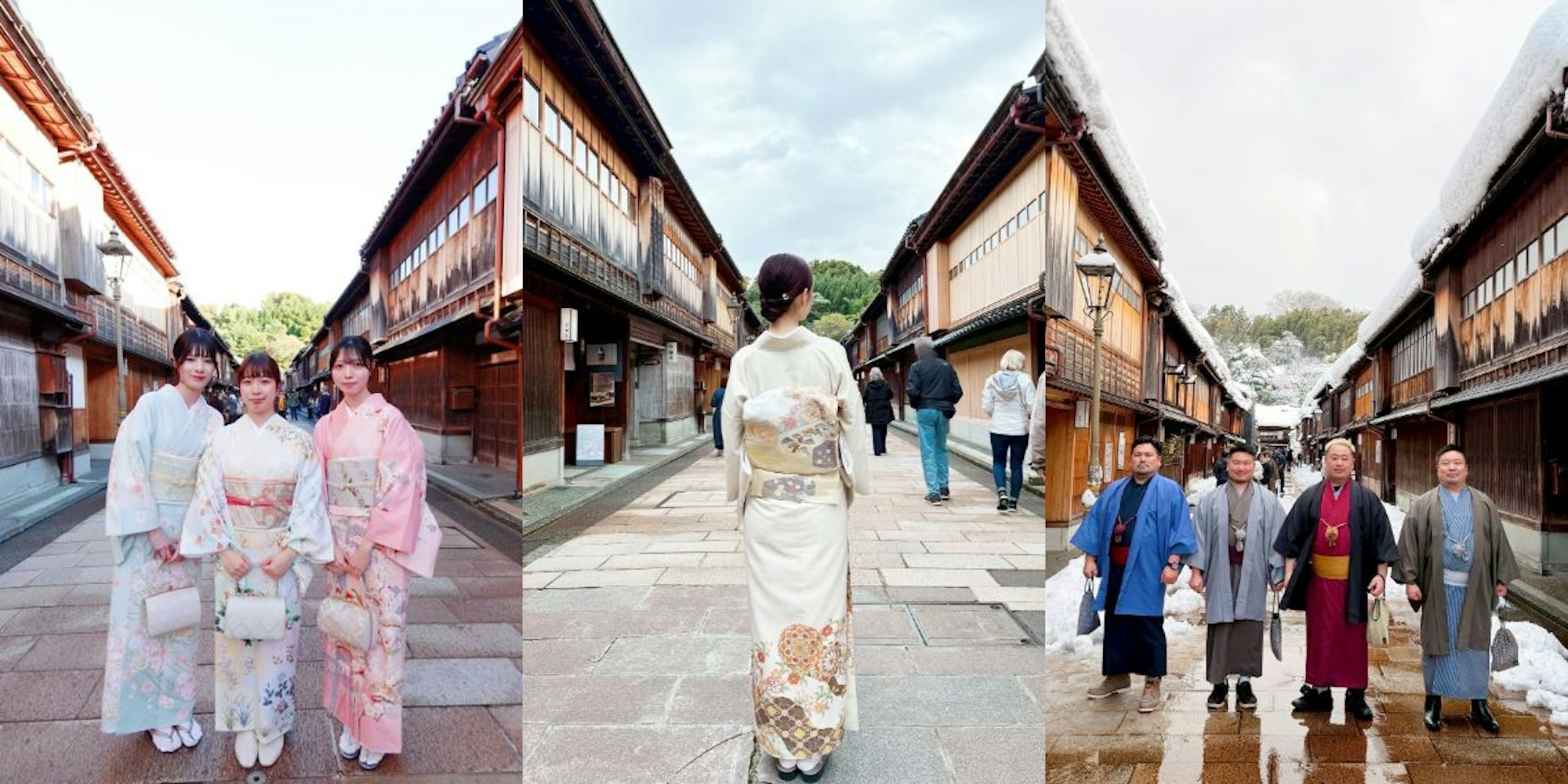 卒業旅行シーズンは主に2月〜3月。この時期の金沢は肌寒い日が多いですが、着物レンタルでも安心して楽しめます。