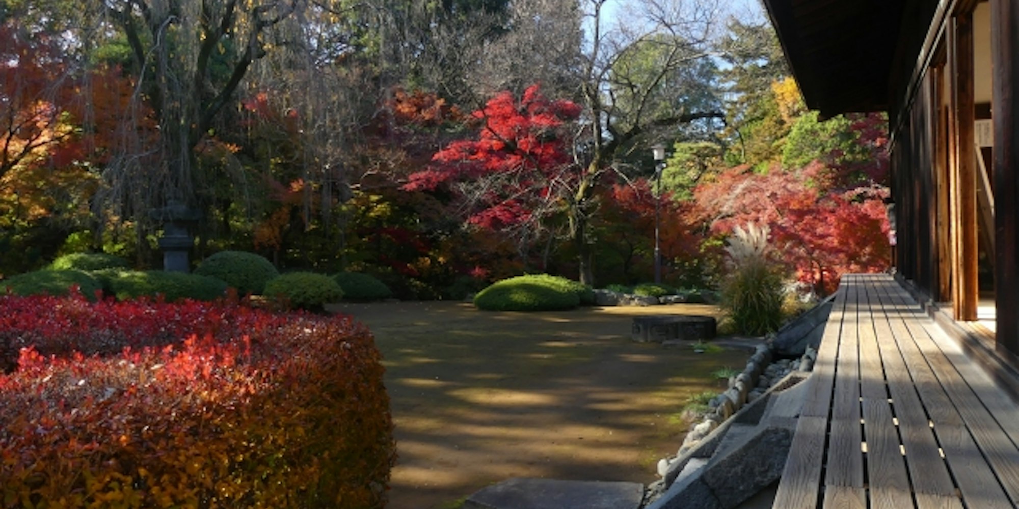 落ち着いた境内空間、茶室周辺の紅葉