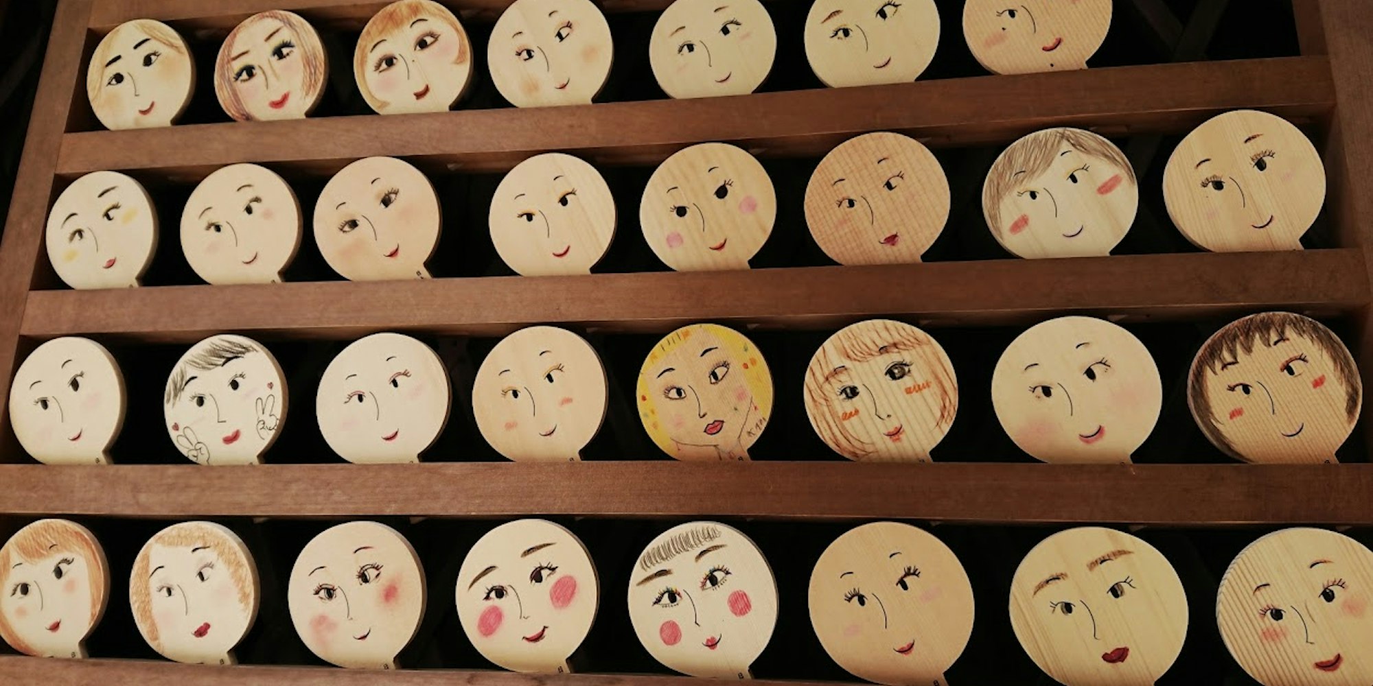 The mirror-shaped ema plaques have face patterns, and you can apply make-up with your usual cosmetics before writing your wish on the back. These ema plaques are very popular among women as they pray for both outer and inner beauty.