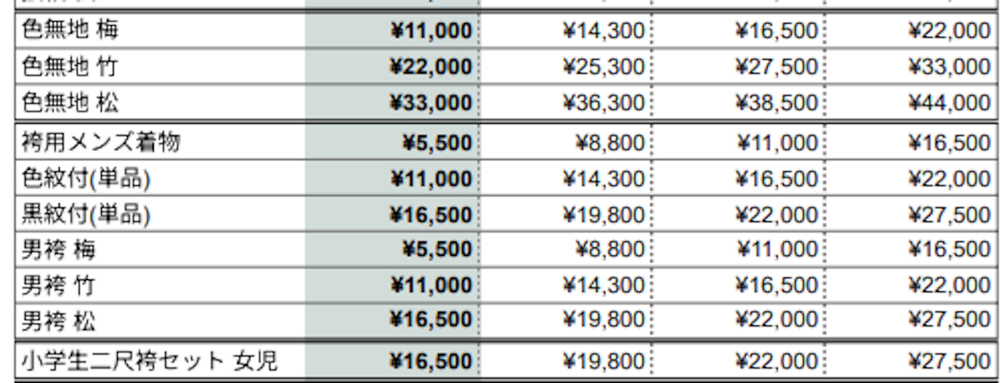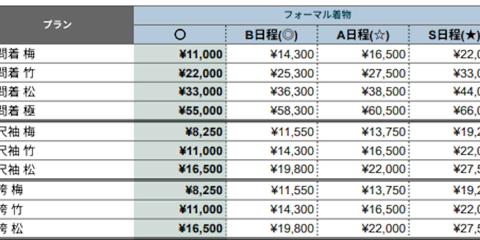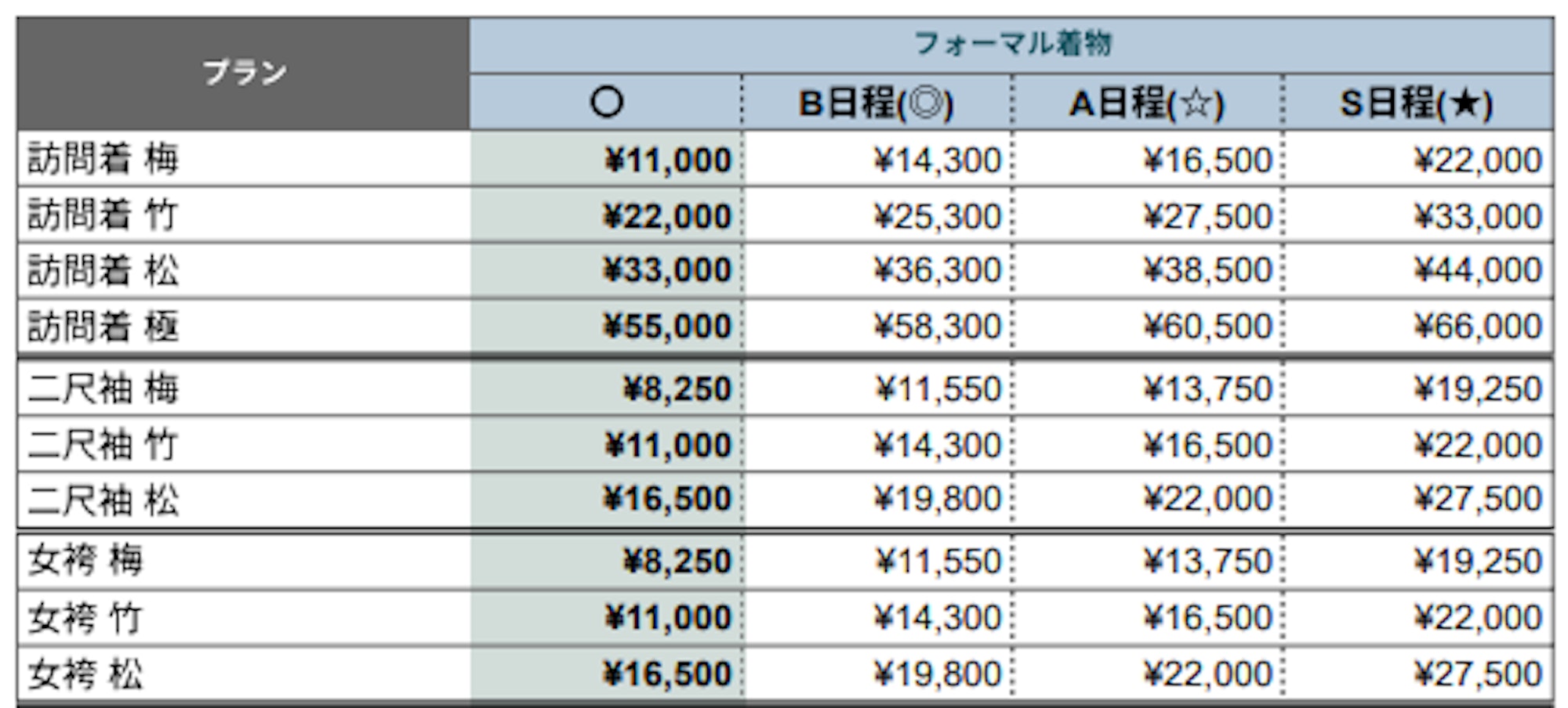 ■【フォーマル着物】料金一覧