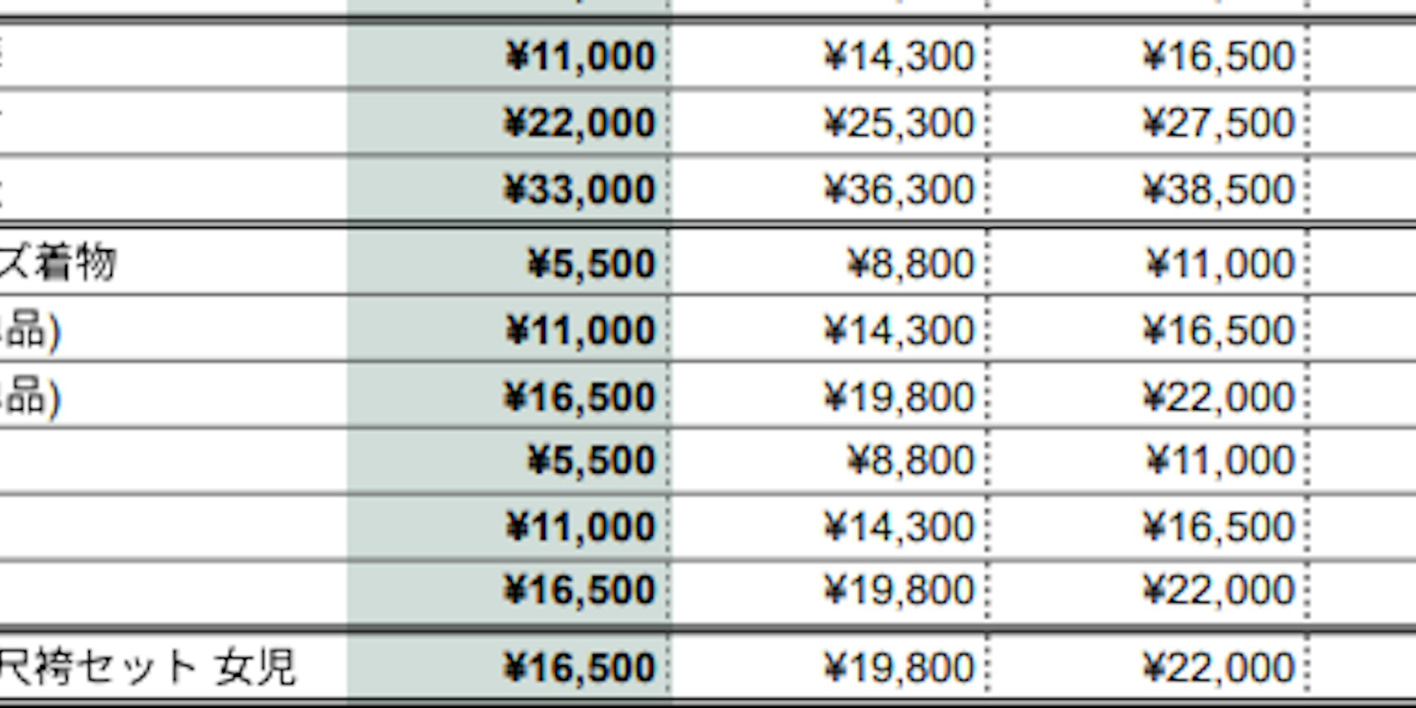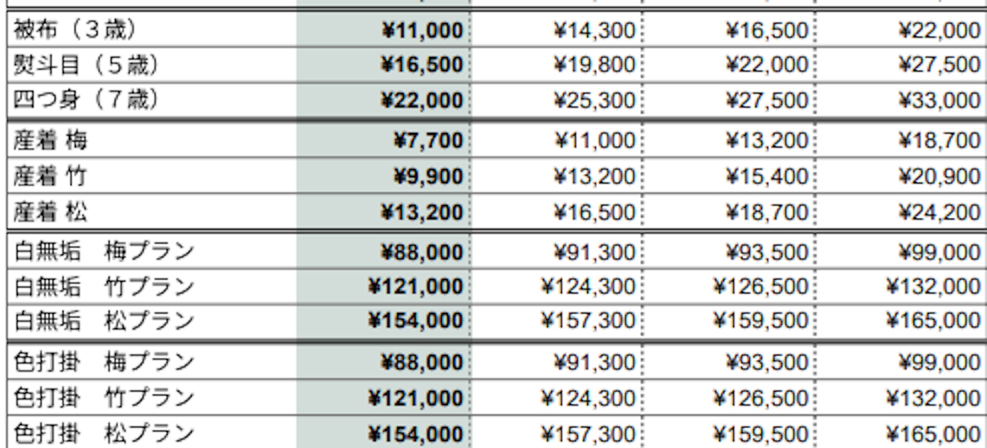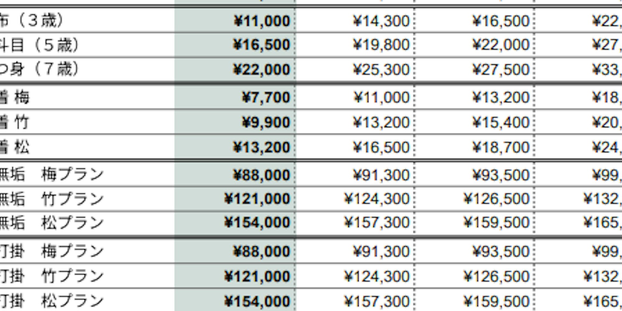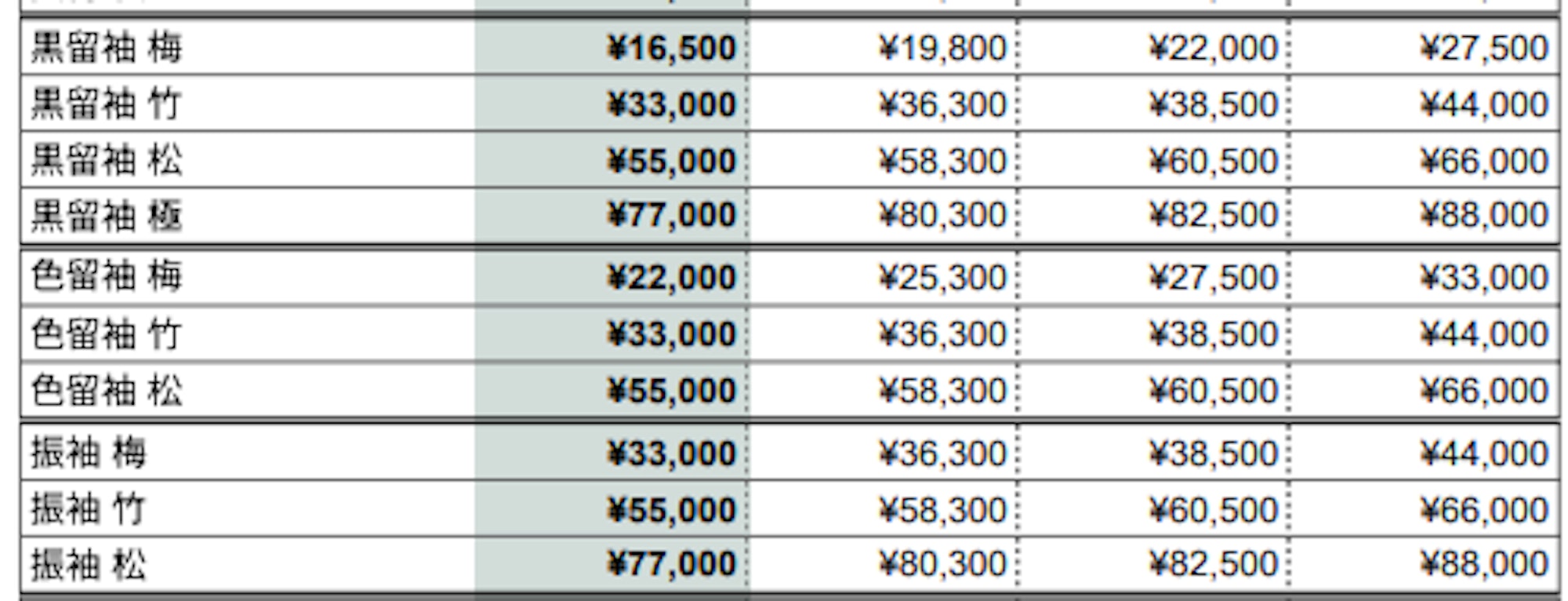■【フォーマル着物】料金一覧