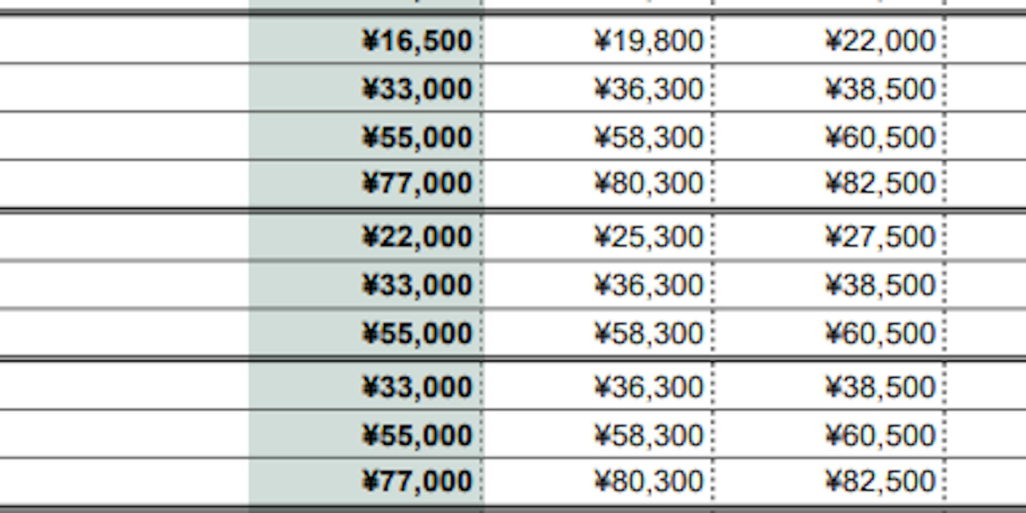 ※以下すべて税込み価格となります。