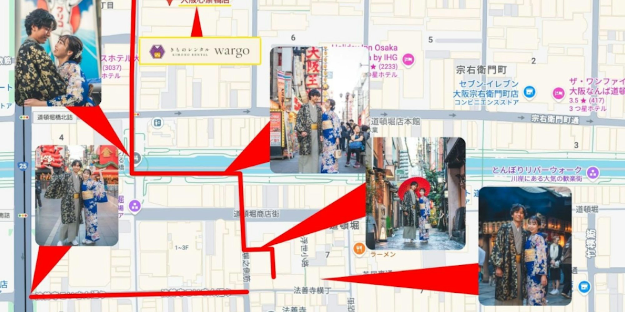 道頓堀から徒歩4分の立地に「きものレンタルwargo 大阪心斎橋店」移転リニューアルし着物でロケーション撮影体験強化