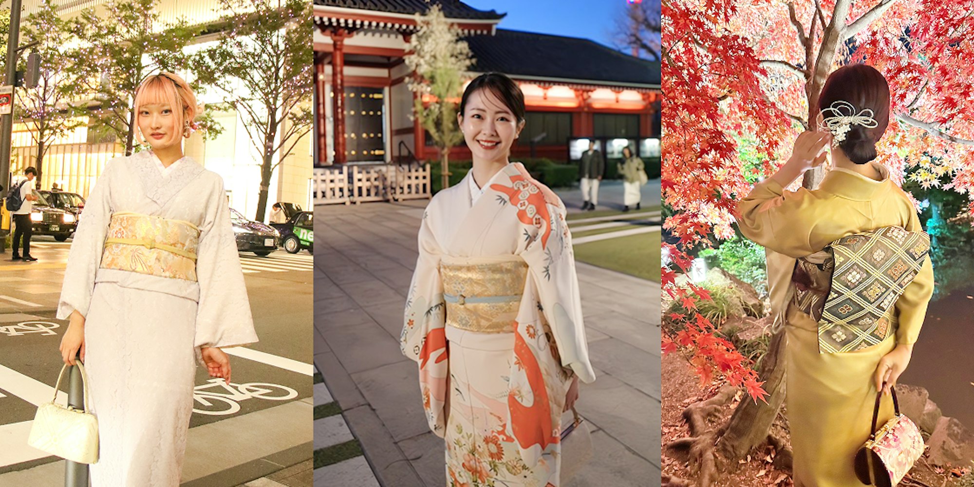 翌日15時まで返却延長可能で、当日は返却時間を気にせず夜までゆっくり楽しめます。紅葉ライトアップやイルミネーションなど夜のデートに利用したい方、お仕事で着物を着る方や撮影用の衣装として着物をご利用の方にもぴったりです。