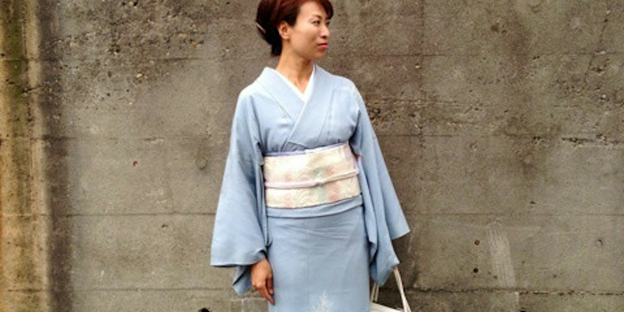 淡いブルーの付け下げ。こういったパステルカラーも上品でオススメです。