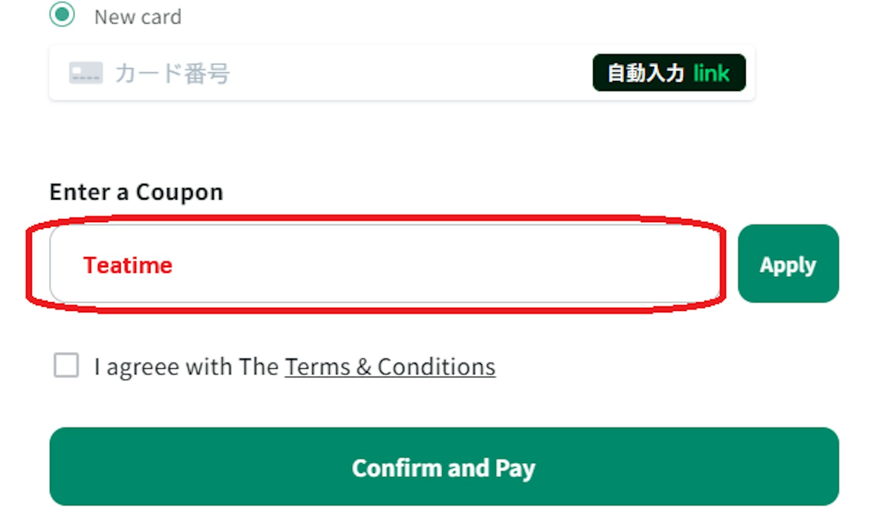 Proceed with your tea ceremony booking and enter the coupon code [Teatime] in "Enter a Coupon".
