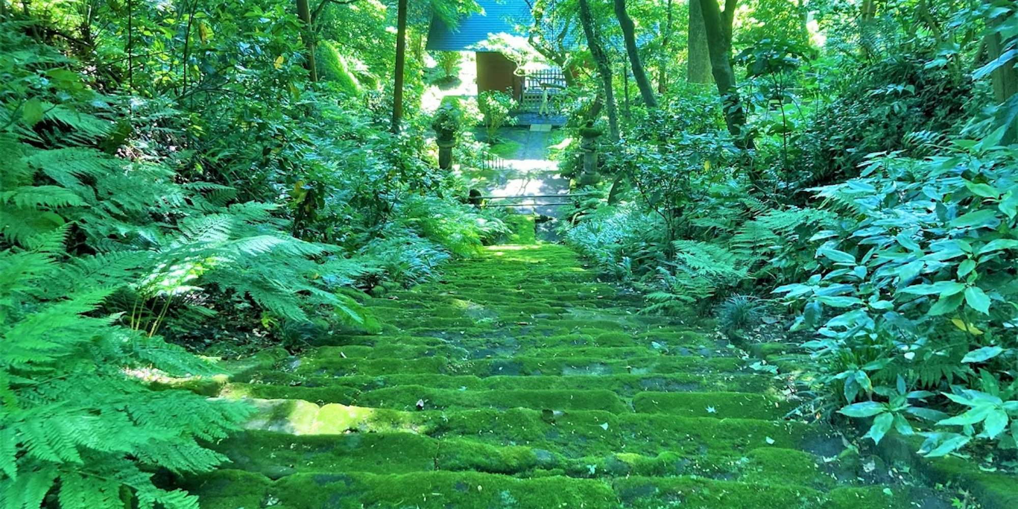 別名「苔寺」としても有名なお寺で、緑色の苔が生い茂る石段は見所の1つです。実際には登れず見るためだけに保管されている階段ですが、多くの苔好きの方がカメラを片手に訪れています。