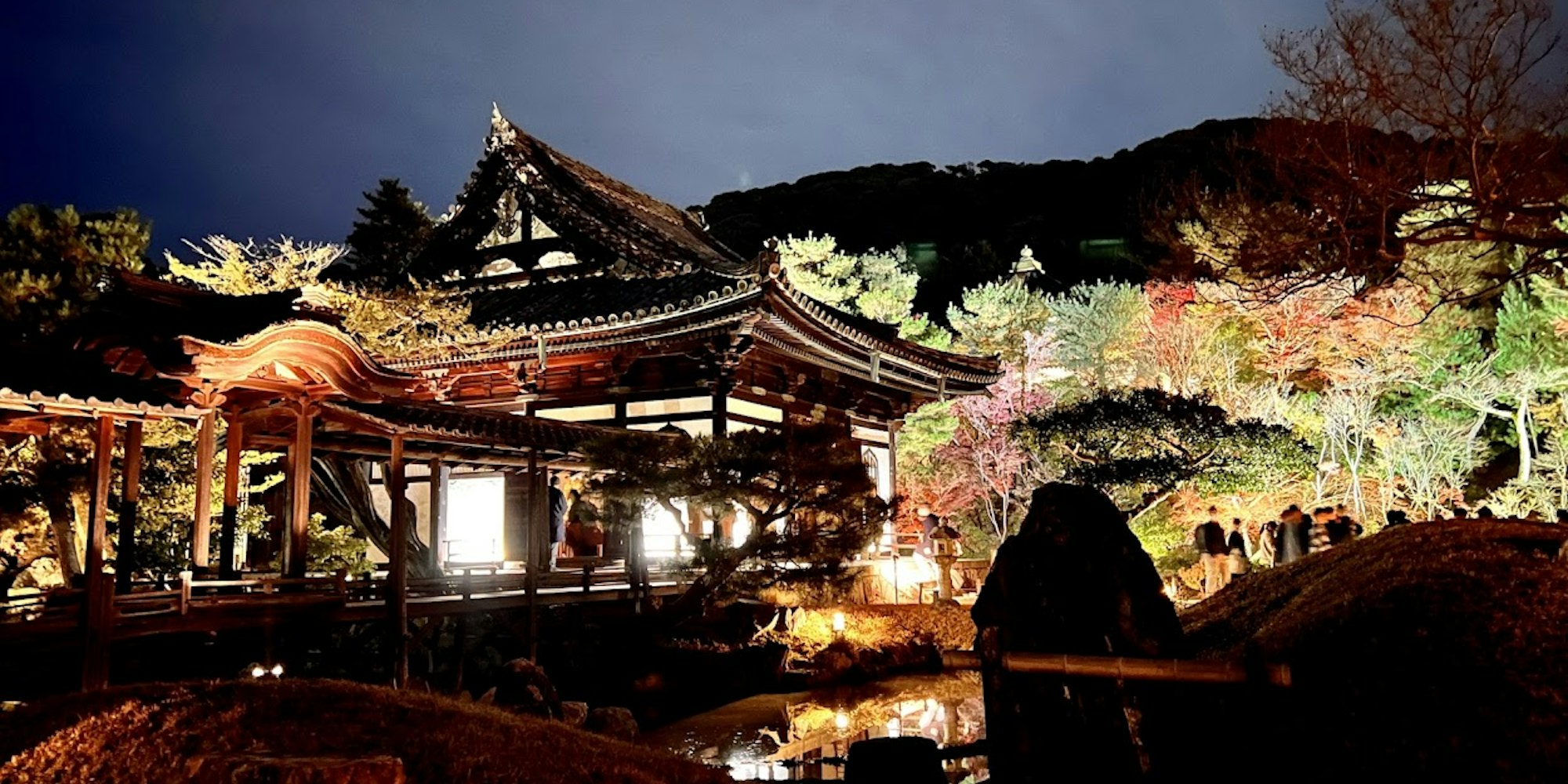 高台寺在七夕期间会举行夜间特别参观活动。被灯光照亮的寺院境内非常美丽,再加上七夕装饰,可以欣赏到充满风情的景色。